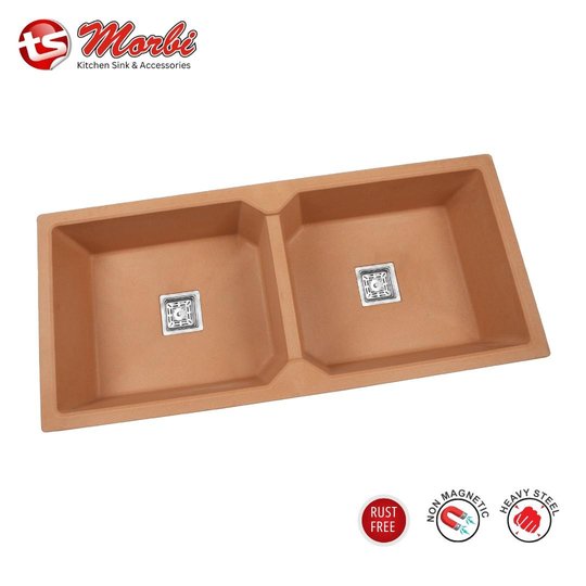 The Double Bowl Peach Ivory Quartz Sink by Morbi Kitchen Sink is a stunning combination of strength, elegance, and practicality, designed to elevate the beauty and functionality of your kitchen. Crafted from high-quality quartz, this sink offers unmatched durability and a luxurious finish, ensuring it becomes a timeless centerpiece in your cooking space. The warm peach ivory tone adds a touch of sophistication, blending seamlessly with both modern and classic kitchen interiors.